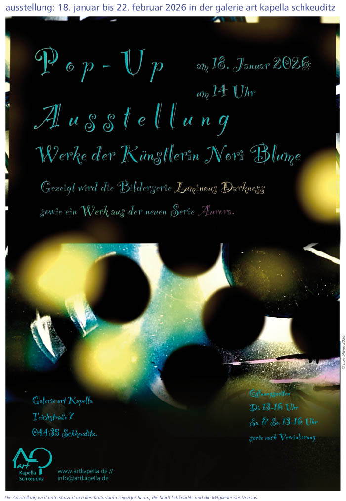 Am 18.01. um 14 Uhr findet der Jahres-Auftakt mit der Pop-up-Ausstellung mit Werken der Künstlerin Nori Blume statt.